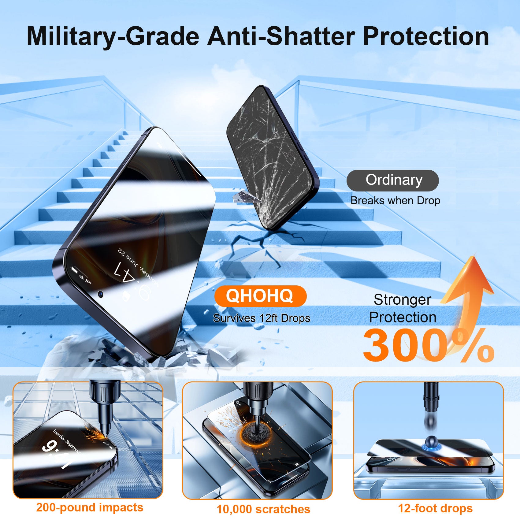 ![QHOHQ [1-Second Auto-Install] 3 Pack Privacy Screen Protector for iPhone 17 Pro + 1 Set Camera Lens Protector, 25° Anti Spy Tempered Glass, [12FT Military Grade Shatterproof], Case Friendly](http://qhohq.com/cdn/shop/files/5_0c92460f-fa3c-4859-a125-e0e300b49a4a.jpg?v=1758042954&width=1445)