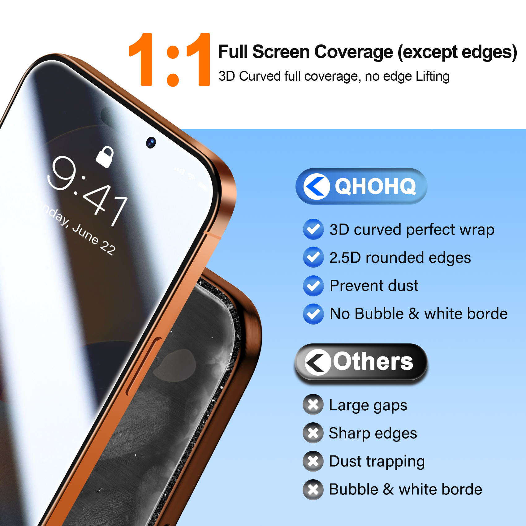 ![QHOHQ [1-Second Auto-Install] 3 Pack Privacy Screen Protector for iPhone 17 Pro Max + 1 Set Camera Lens Protector, 25° Anti Spy Tempered Glass, [12FT Military Grade Shatterproof], Case Friendly](http://qhohq.com/cdn/shop/files/9_ef99c833-fbd6-4834-917e-d2a27bced5cf.jpg?v=1758043099&width=1445)